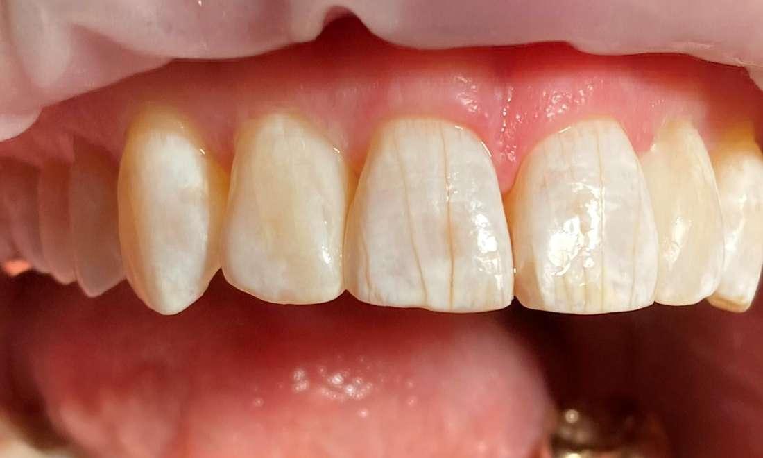 After orthodontics, this patient was left with black triangles of space at the gum line. Using the Bioclear system, Dr. Farahani added tooth colored filling material to close the spaces without removing any tooth structure! (Note: Black Triangles result from historic bone loss, not caused by orthodontics!)